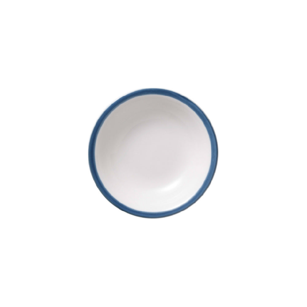 Libbey, 113267, Fruit Bowl, 5.5 oz., 4-7/8” dia. x 1-3/8" H, round, dishwasher, freezer, microwave & oven-safe, vitrified, porcelain, blue banded, Porcelana™ (5-year no chip warranty) (36 each per case) (Packed By: Cs)