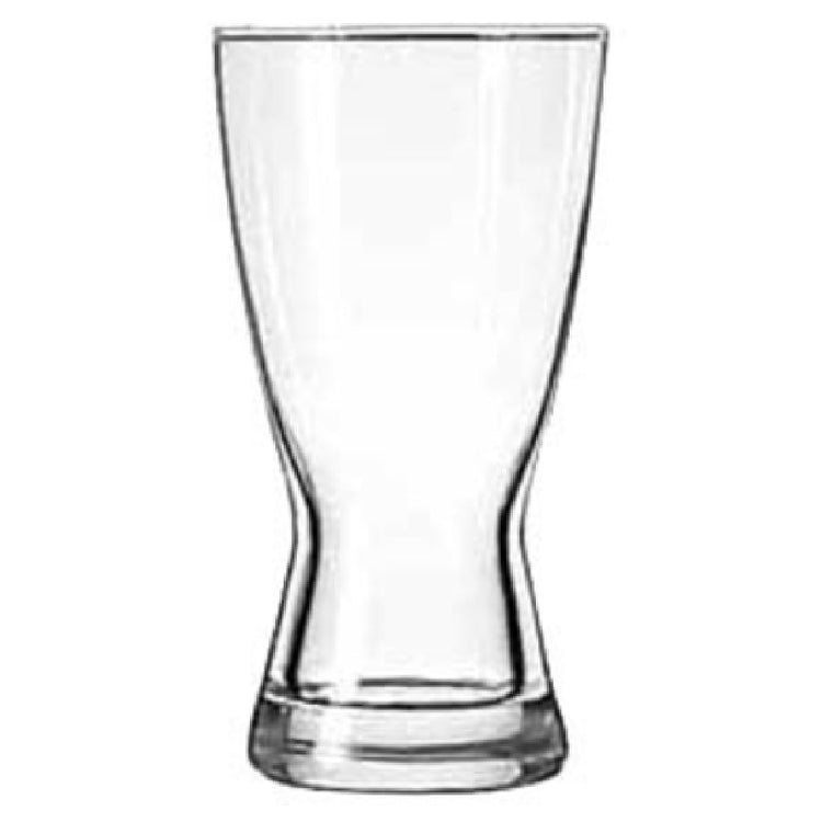 The Libbey 1181HT Pilsner Glass 12 Oz. Safedge® Rim Guarantee is a meticulously crafted glass designed for both aesthetic appeal and durability, ideal for various segments within the hospitality and food service industries. This glass, with a capacity of 12 ounces, features a distinctive hourglass design that enhances the presentation of beverage offerings. Technically defined by its dimensions of height 6 inches, top diameter 3-1/8 inches, base diameter 2-5/8 inches, and maximum diameter 3-1/8 inches, it caters to precise serving needs. The Libbey 1181HT is made with clear glass, allowing for an elegant visual presentation while ensuring robustness through its heat-treated construction. A standout feature is the Safedge® Rim Guarantee, which reinforces the rim to prevent chipping, ensuring longevity and reducing replacement costs, thus providing a reliable option for establishments focused on quality and cost-efficiency. Each case contains 24 glasses, making it convenient for bulk purchasing. The Libbey 1181HT Pilsner Glass combines sophisticated design with practical durability, making it an excellent choice for restaurants, bars, and catering services looking to enhance their beverage presentation while maintaining high standards of durability and cost-effectiveness.