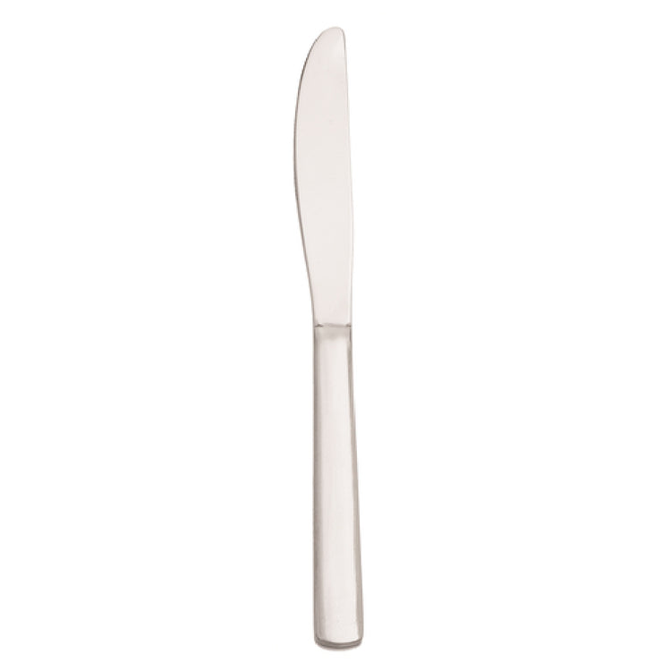The Libbey 143 5912, formerly known as the World Tableware Dinner/Entree Knife, stands as a premium option within the flatware industry, tailored for upscale dining environments and catering services. Measuring 8-1/4 inches in length, this knife features a distinctive fluted blade that enhances both its aesthetic appeal and functional performance. Crafted from 18/0 stainless steel, the knife boasts a heavy weight, offering a substantial feel that complements its robust design. The solid handle of the Libbey 143 5912 ensures a comfortable grip, making it suitable for both casual and formal dining settings. Part of the Windsor Grandeur collection, this knife is packaged in cases of 12, catering to the needs of restaurants and hospitality businesses that require consistent quality and durability in their table settings. Its composition of 18/0 stainless steel not only contributes to its strength but also ensures ease of maintenance, making it a practical choice for high-traffic dining venues. The Libbey 143 5912 knife embodies a blend of elegance and functionality, making it an ideal solution for establishments seeking to elevate their dining experience with reliable and stylish cutlery.