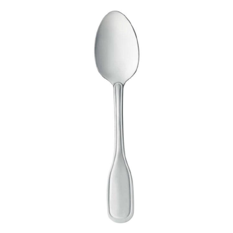 The Libbey 145 001, formerly known as World Tableware, is a teaspoon measuring 6-3/8 inches, crafted from 18/0 stainless steel, and is characterized by its extra heavy weight. This particular design is part of the Wellington collection, providing a sophisticated touch to dining settings. The 18/0 stainless steel composition indicates a nickel-free construction, making it less prone to bending and more economically viable, while still offering a mirror-like finish. This makes it a practical choice for high-volume food service environments, including restaurants, hotels, and catering businesses, where durability and cost-efficiency are crucial. The extra heavy weight of the teaspoon enhances its durability and gives it a substantial, quality feel, which is favored in upscale dining experiences. With 36 teaspoons included per case, it offers a cost-effective solution for establishments needing to maintain a large inventory of high-quality flatware. Blending both functionality and style, the Libbey 145 001 teaspoon is a versatile flatware option suitable for a variety of dining settings, from casual to formal, ensuring a pleasing experience for end-users across different market segments within the food service industry. Its balance of aesthetic appeal and practical features makes it a valuable addition to any table setting.