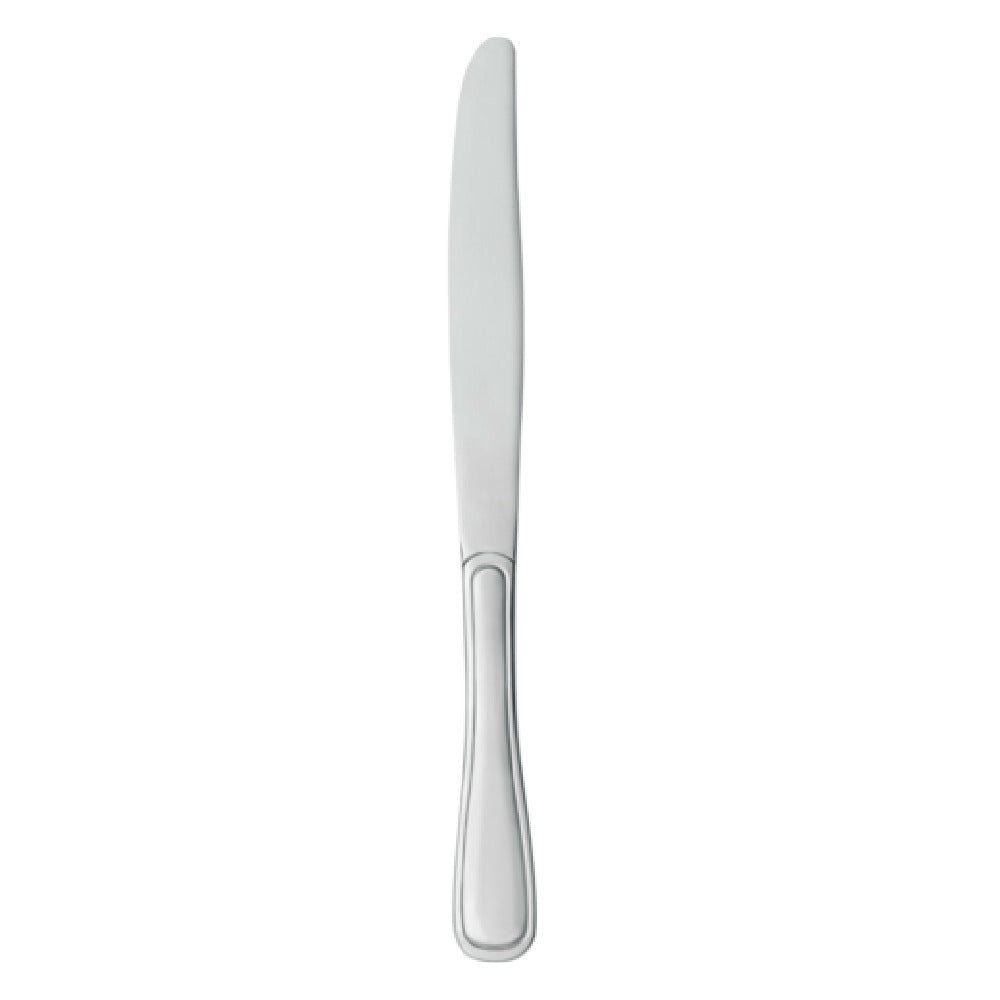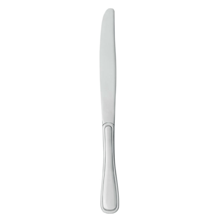 The Libbey 145 5501 Dinner Knife, formerly known as World Tableware, is a meticulously crafted utensil designed to meet the exacting standards of fine dining establishments and caterers alike. Measuring 9-5/8 inches, this dinner knife features a serrated blade that is engineered for precise cutting and enhanced durability. The knife boasts a solid handle, providing a comfortable and balanced grip for users during meal service. Constructed from 18/0 stainless steel, it exemplifies robustness and resilience, offering an extra heavy weight that ensures it withstands the rigors of frequent use in high-volume settings. The Wellington design accentuates its elegant and timeless aesthetic, making it a versatile addition to any table setting. Supplied in multiples of 12 per case, the Libbey 145 5501 Dinner Knife caters to various segment markets within the hospitality industry, from upscale restaurants seeking a sophisticated dining experience to event planners requiring reliable and stylish cutlery for banquets and receptions. Its specification and construction make it an essential tool for professionals who prioritize both functionality and design in their culinary presentations.