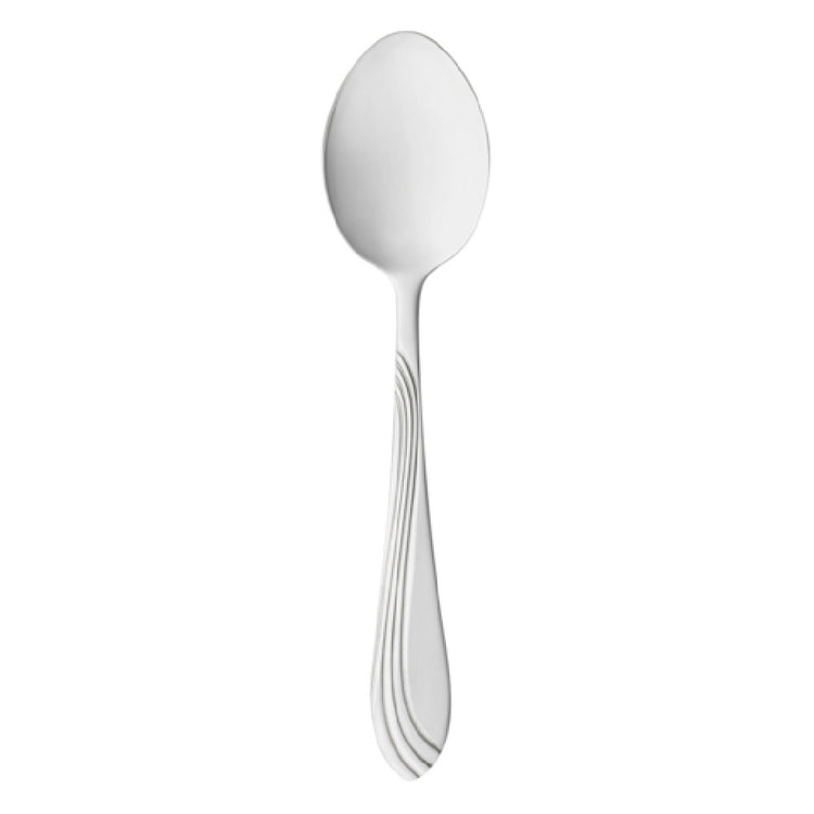 The Libbey 148 002 (Formerly World Tableware) Dessert Spoon is a versatile utensil designed to meet the demands of various dining environments. Measuring 7-1/4 inches in length, this spoon is crafted from 18/0 stainless steel, offering a durable and affordable solution for both casual and formal settings. Its medium weight construction ensures a balanced feel, making it comfortable for everyday use in restaurants, hotels, and catering services. This dessert spoon is part of the Riva collection, which is known for its timeless design and practicality. Packaged with 36 spoons per case, it provides great value for bulk purchase scenarios, ideal for establishments looking to maintain a consistent and stylish table setting. The 18/0 stainless steel composition offers a cost-effective option for those who prioritize functionality and ease of maintenance, without compromising on aesthetic appeal. Its sleek design complements a wide array of dinnerware patterns, making it a fitting choice for enhancing dining experiences across different market segments within the hospitality industry. Whether used for serving desserts or as part of a sophisticated cutlery lineup, the Libbey 148 002 Dessert Spoon combines quality and practicality in a single, elegant solution.