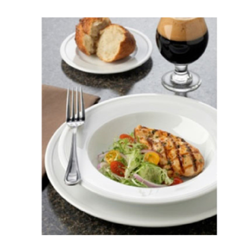 The Libbey 1502-10230, previously recognized as World Tableware, is a meticulously designed soup bowl with a capacity of 11-1/2 ounces. This round, rimmed bowl measures 9-3/8 inches in diameter and 1-3/8 inches in height, making it an ideal choice for serving a variety of soups and broths. Crafted from bright white porcelain, it adds a touch of elegance and sophistication to any dining setting. As part of the Empire™ World® Collection, this soup bowl is packaged with 12 pieces per case, making it a practical option for restaurants, caterers, and hospitality businesses seeking to enhance their tableware presentation. Its classic design and durable porcelain construction ensure it can withstand the demands of busy food service environments while maintaining its aesthetic appeal. This soup bowl is perfect for establishments looking to combine functionality with style, offering guests an elevated dining experience. The Libbey 1502-10230 merges timeless design with practical features, making it an essential component of any professional dinnerware collection.