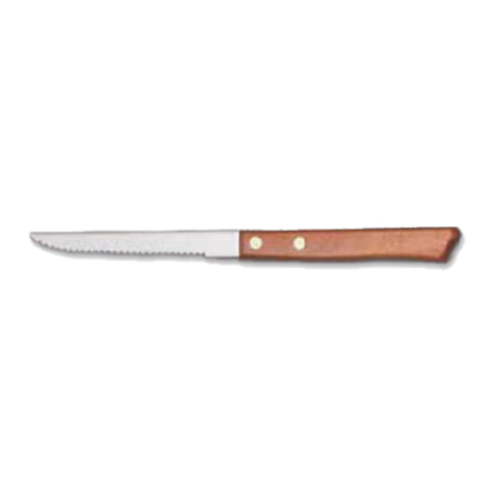 The Libbey 200 1482 (Formerly World Tableware) Steak Knife 8" Economy is a practical choice for culinary establishments seeking to balance affordability with functionality. This steak knife features an 8-inch blade, which is expertly crafted to provide precision cutting, making it an excellent tool for both casual dining settings and high-volume restaurant environments. The knife's wooden handle enhances its aesthetic appeal, while also ensuring a comfortable and secure grip for users. Each case contains 24 of these knives, offering an economical solution for restaurants, catering services, and food service industries that require reliable cutlery in bulk. The Libbey 200 1482 steak knife is particularly suited for establishments that prioritize efficient operations without compromising on quality, making it an ideal choice for family restaurants, steakhouses, and banquet halls. Its sturdy construction promises durability even with frequent use, which is essential for maintaining cost-effectiveness in large-scale dining operations. The previously branded World Tableware designation underscores its established presence and trusted performance in the cutlery market. Whether for everyday use or special occasions, this steak knife stands out for its combination of economy, practicality, and enduring quality.