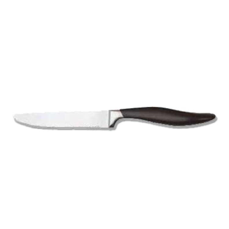 The Libbey 201 2801 (formerly World Tableware) Steak Knife is an expertly crafted utensil, measuring 8-3/4 inches in length, designed to meet the rigorous demands of various dining establishments. This stand-up steak knife is distinguished by its forged construction, ensuring durability and a superior cutting performance. It features a sleek black handle made from ABS plastic, known for its strength and resistance to impact, providing a comfortable and reliable grip for users. Each case includes 12 of these high-quality knives, making them ideal for steakhouses, restaurants, and catering services that require a consistent supply of dependable cutlery. The Libbey 201 2801 is tailored to enhance the dining experience by combining functionality with style, making it a valuable tool in both casual and formal settings. Its distinctive stand-up design adds elegance to table settings while being practical for easy access and storage. Whether used in bustling restaurant kitchens or at refined dining events, this steak knife delivers exceptional performance and aesthetic appeal, serving as a testament to Libbey's commitment to quality and innovation in tableware products.
