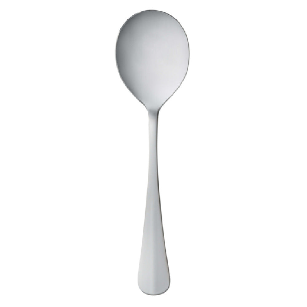 The Libbey 213 004, previously known as World Tableware, Soup Spoon is a finely crafted utensil measuring 7-1/4 inches in length, featuring a round bowl design. This soup spoon is part of the World® Collection and is constructed from 18/0 stainless steel, known for its durability and resistance to corrosion. The Baguette pattern adds a touch of elegance, making it a versatile piece suitable for various dining settings, from casual to formal. Each case contains 36 soup spoons, catering to both large-scale hospitality venues and smaller, intimate dining establishments. The robust stainless steel construction ensures longevity and ease of maintenance, while its classic design complements a wide range of table settings, enhancing the dining experience. This product is ideal for restaurants, hotels, and catering services seeking high-quality, durable flatware that balances aesthetics with functionality.