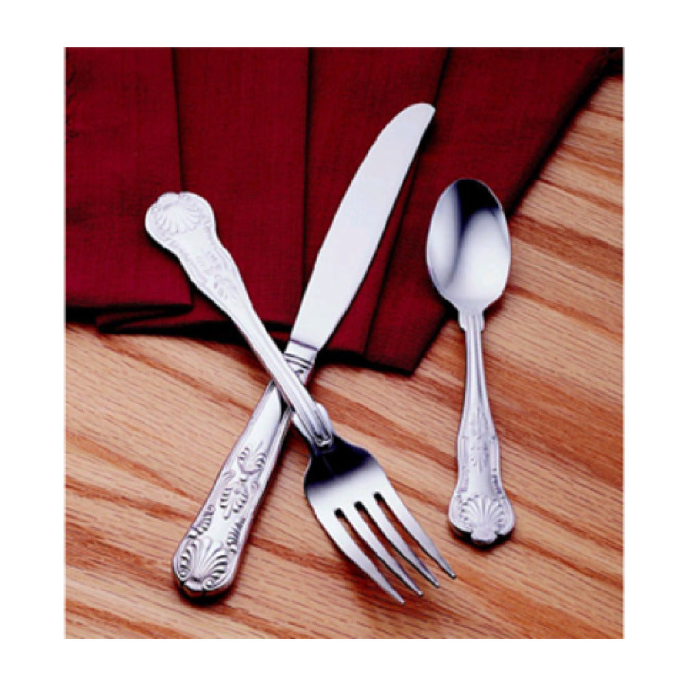 Libbey 244 2702 - Formerly World Tableware - Dinner Knife 9-5/8" Fluted Blade is a meticulously crafted cutlery piece that stands out in the World® Collection. Engineered with precision, this knife features a fluted blade that enhances both its aesthetic appeal and functional performance, making it an ideal choice for a variety of dining settings. The hollow handle design ensures a balanced weight distribution, providing a comfortable grip and ease of use for chefs and diners alike. Constructed from 18/0 stainless steel, it offers rust resistance and durability, suitable for high-volume environments like restaurants or catering services. Measuring 9-5/8 inches in length, it is perfectly sized for versatility across different culinary presentations. With 36 pieces per case, this knife is well-suited for large-scale hospitality operations seeking reliable and stylish utensils. The Kings pattern elegantly complements formal table settings, adding a touch of sophistication. This dinner knife seamlessly aligns with the needs of diverse segments within the foodservice industry, whether in upscale dining, event catering, or hotel banquets, making it a valuable addition to any professional cutlery collection.
