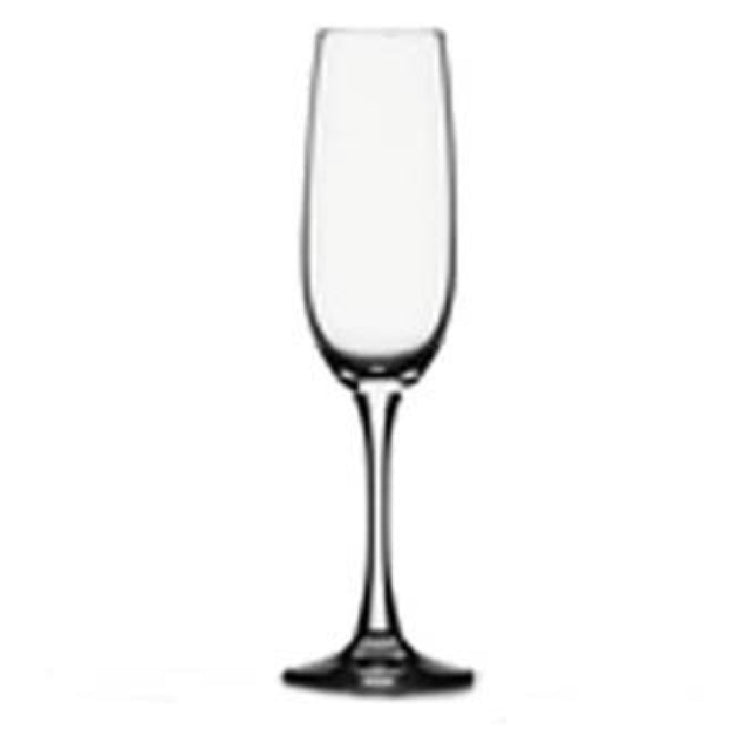 The Libbey 4078007 Sparkling Wine/Flute Glass 6-1/2 Oz. Dishwasher Safe is meticulously crafted for enthusiasts and professionals appreciating both elegance and practicality. With a capacity of 6-1/2 ounces, this flute glass is designed to enhance the experience of enjoying sparkling wines. Its dimensions, standing at a height of 8-7/8 inches, top diameter of 1-3/4 inches, bottom diameter of 2-5/8 inches, and diameter of 2-1/8 inches, make it a perfect fit for a variety of settings, from sophisticated gatherings to casual celebrations. Made from break-resistant, crystal-clear glass, it combines the aesthetic appeal of fine glassware with durability, ideal for high-traffic environments such as restaurants, hotels, or catering events. The inclusion of the Soiree by Spiegelau design ensures a touch of luxury in every sip. Furthermore, being dishwasher safe, it provides the convenience of easy maintenance without compromising on style or quality. Each case contains 12 glasses, making it a practical option for volume use in both commercial and home settings. The Libbey 4078007 is not just a glass; it's a sophisticated tool designed to elevate and refine the art of wine presentation and enjoyment across diverse market segments within the hospitality industry.