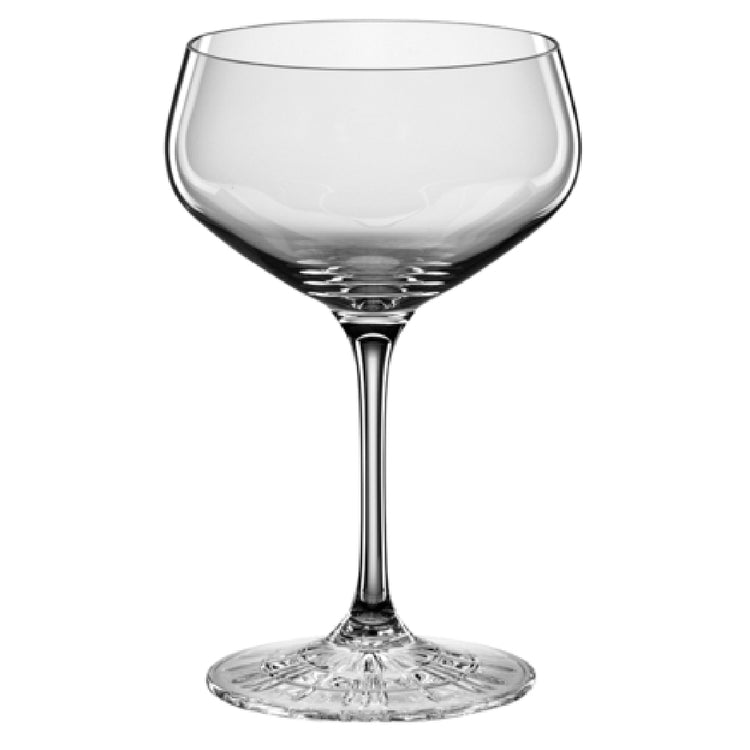 The Libbey 4508008 Coupe Glass 8 Oz. is a versatile, dishwasher-safe crystal glass designed to enhance the drinkware collection of any beverage service establishment. As part of the Perfect Serve collection by Spiegelau, this coupe glass is crafted for durability and elegance, making it an attractive choice for various market segments, including high-end restaurants, bars, and hotels. With its break-resistant construction, it offers peace of mind in fast-paced environments where durability is paramount. The glass features a height of 5-1/2 inches, a top diameter of 3-1/8 inches, a base diameter of 2-7/8 inches, and a diameter of 3-1/2 inches, providing ample space for an 8-ounce serving. This coupe glass is available in cases of 12, allowing establishments to easily stock up for their drink presentations. The Libbey 4508008 Coupe Glass seamlessly combines practical functionality with sophisticated design, meeting the demands of professional settings while maintaining aesthetic appeal. Its ability to withstand frequent use and cleaning makes it a practical choice for high-volume operations, ensuring longevity and consistent performance in any drink service scenario.
