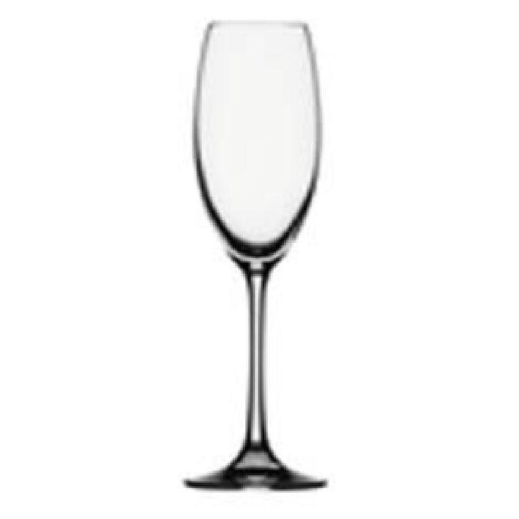 The Libbey 4518029 Champagne Flute Glass, with a capacity of 8-3/4 ounces, is a distinguished choice for both casual and formal beverage settings. As a part of the Vino Grande collection by Spiegelau, these glasses are crafted from break-resistant crystal glass, ensuring durability and a refined drinking experience. Standing at 9 inches in height, with a top diameter of 2 inches, a bottom diameter of 2-7/8 inches, and an overall diameter of 2-1/2 inches, these flutes boast elegant dimensions that enhance the visual appeal of your table setting. Each case contains 12 glasses, making it a practical acquisition for restaurants, event venues, and catering services. The dishwasher-safe feature simplifies post-event cleaning, making it highly convenient for busy hospitality environments. The Libbey 4518029 Champagne Flute Glass effectively combines form and function, offering a touch of sophistication to any occasion while maintaining practicality and ease of maintenance. Its construction from quality materials exemplifies its resilience, making it suitable for a range of market segments, including high-end dining establishments and casual celebratory gatherings. This glass adds an air of elegance while providing reliability, essential for any professional or personal event.