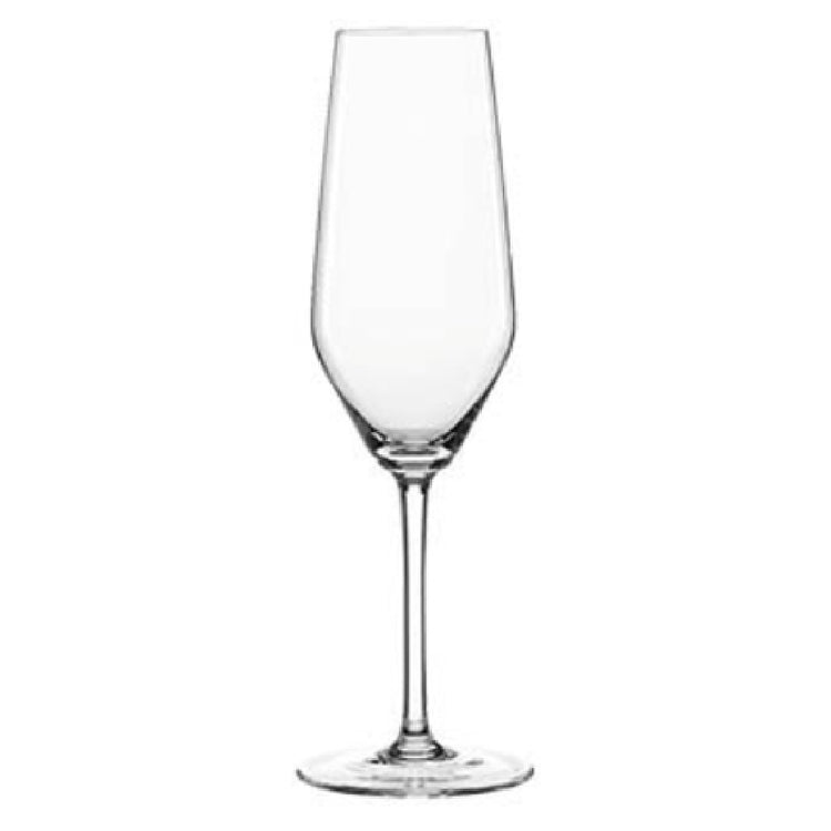 The Libbey 4678007 Sparkling Wine/Flute Glass 8 Oz. is a dishwasher-safe, break-resistant crystal glass designed to enhance any sparkling wine experience. With its elegant Style Spiegelau design, this glass stands at 8-7/8 inches in height, making it an ideal choice for both formal and casual settings. The dimensions include a top diameter of 1-3/4 inches, a bottom diameter of 2-7/8 inches, and a full diameter of 2-3/8 inches, providing a refined aesthetic while ensuring durability and stability. Packaged with 12 glasses per case, this product caters to both individual consumers and the hospitality industry, offering a practical solution for restaurants, bars, and event venues. The Libbey 4678007 is crafted to withstand the rigors of frequent use, maintaining its clarity and resilience through countless cycles in the dishwasher. This sparkling wine glass is a brilliant choice for establishments seeking to provide their patrons with a high-quality drinking experience, combining both style and functionality. Its robust build and elegant design make it a versatile addition to any collection, suitable for a variety of sparkling wine types and occasions.
