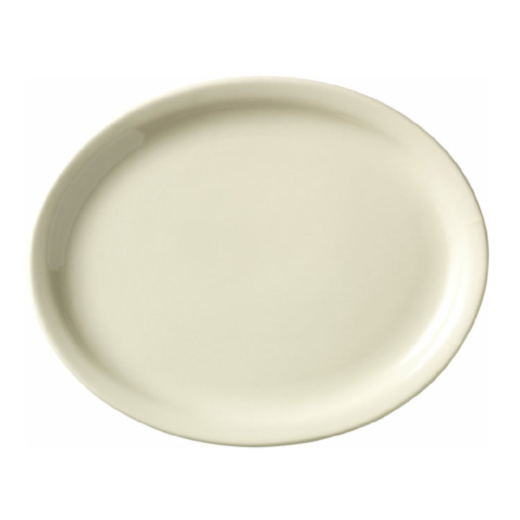 The Libbey 740-901-115 (formerly World Tableware) Platter is a sophisticated dining solution, expertly crafted to meet diverse industry standards. Measuring 11-1/2 inches in length, 9-1/4 inches in width, and 1-1/8 inches in height, this platter is designed in an elegant oval shape. Its narrow rim adds a subtle touch of refinement, perfect for enhancing the presentation of culinary creations. Made from cream white porcelain, this platter embodies the Porcelana™ quality, ensuring durability and a timeless aesthetic suitable for upscale restaurants, hotels, and catering services. The platter's dimensions and material make it an ideal choice for serving appetizers, main courses, or shared dishes, appealing to various market segments including high-end dining establishments and casual eateries. Offered in cases of 12, it is a cost-effective option for bulk purchasing, meeting the demands of large-scale operations. The Libbey 740-901-115 platter stands out for its blend of functionality and style, making it a versatile asset in professional food service environments.