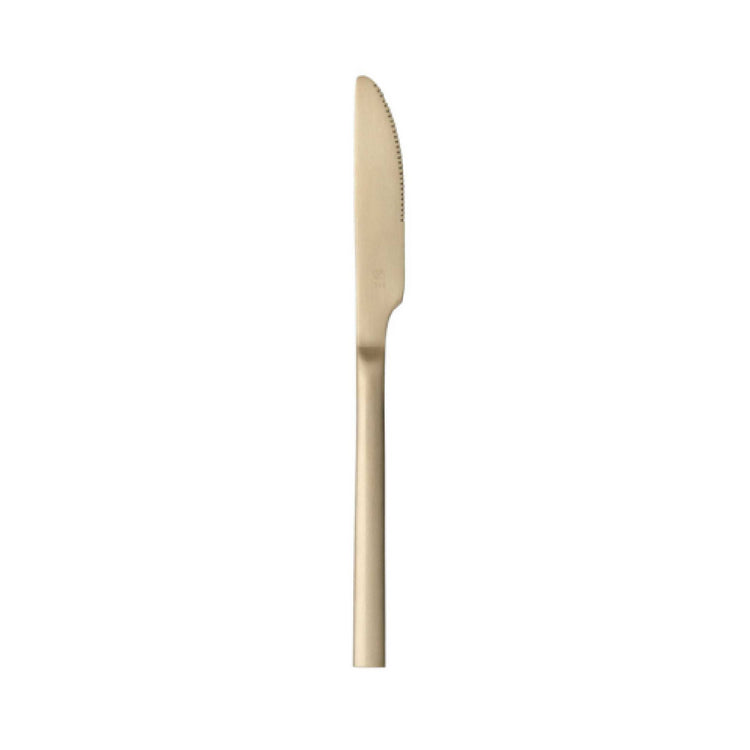 Libbey, 763 5501, (Formerly World Tableware) Dinner Knife, 9", serrated blade, solid handle, 18/0 stainless steel, satin champagne gold finish, Elexa Satin Or (12 each per case) (Packed By: Cs)