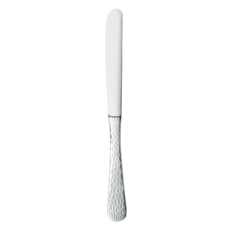 The Libbey 794 5502 Dinner Knife, formerly known as World Tableware, features a 9-3/4 inch length with a uniquely designed fluted blade, making it a standout choice for various dining environments. Crafted from 18/0 stainless steel, this knife offers a medium weight that balances durability with a comfortable handling experience. The solid hammered mirror finish on its handle not only enhances its aesthetic appeal but also provides a tactile grip, ensuring ease of use for both professional and casual dining settings. This versatile dinner knife comes in cases of 36, catering to the needs of large-scale food service operations, such as restaurants, hotels, and catering businesses, where consistency and quality in cutlery are paramount. Its stainless steel construction ensures resistance to corrosion and staining, promising longevity and reliability under frequent use. The Libbey 794 5502 Dinner Knife's combination of design, material, and finishing makes it an excellent option for establishments seeking to elevate their tableware collection with a stylish yet practical implement that complements a wide range of dining occasions, from casual to formal settings. This product effectively integrates aesthetic appeal with functional design, catering to diverse market segments within the dining industry.