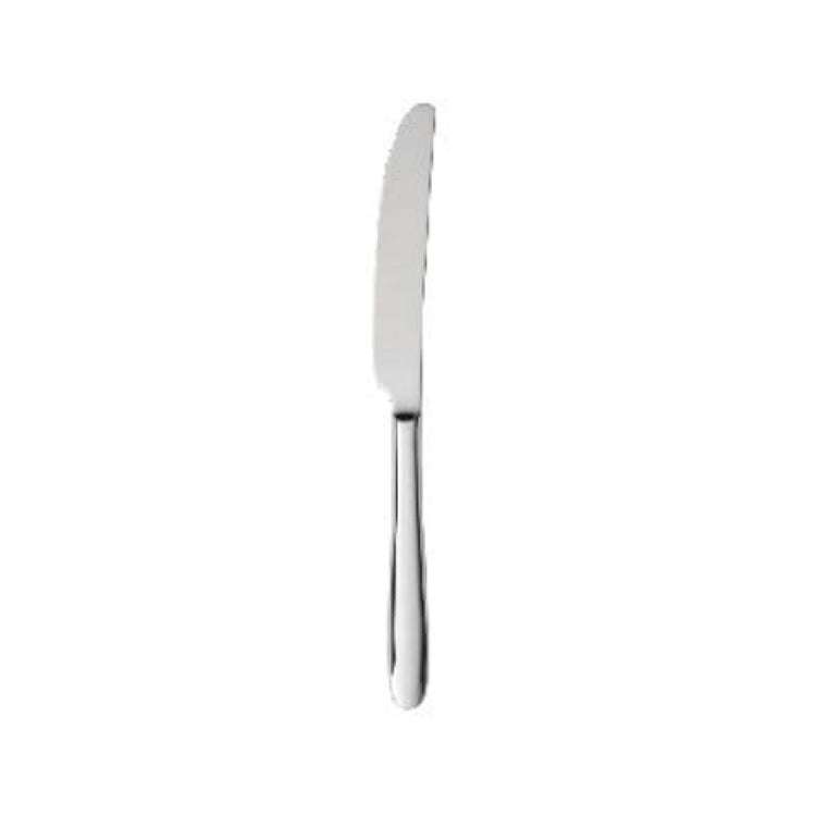The Libbey 804-5511 Dinner/Dessert Knife is an elegant and versatile utensil measuring 8-1/4 inches, perfect for any dining setting that values both style and functionality. Crafted from high-grade 18/10 stainless steel, this knife promises durability and resistance to rust and corrosion, ensuring long-lasting performance. The knife features a mirror finish that enhances its visual appeal, making it a sophisticated choice for both formal and casual dining experiences. Its rounded handle design provides a comfortable grip, allowing for ease of use when cutting through dinner or dessert items. Perfectly balanced, the Libbey 804-5511 knife is ideal for restaurant, hotel, or home use, providing a touch of elegance and practicality to any table setting. Supplied in cases of 12, it is suitable for large-scale events or everyday use, ensuring that you have enough utensils on hand for all your dining needs. The Novara collection emphasizes modern design without compromising on quality, making this knife an excellent addition to any collection for those who appreciate both aesthetics and utility in their cutlery.