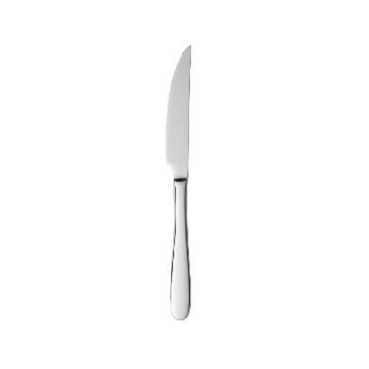 The Libbey 804 5762 Steak Knife 9" Rounded Handle is a meticulously designed utensil that combines elegance and functionality, making it an essential tool for both professional and home dining experiences. Crafted from high-quality 18/10 stainless steel, this steak knife ensures superior durability and resistance to rust and corrosion, thus promising longevity in various kitchen environments. The mirror finish of the knife not only enhances its aesthetic appeal but also complements the sophisticated table settings found in upscale restaurants or catered events. Its 9-inch blade is expertly balanced with a rounded handle, offering a comfortable grip and precise control for effortlessly slicing through steaks and other meats. Packaged with 12 knives per case, this product is ideal for bulk purchase by steakhouses, hotels, and catering services that prioritize efficiency and style. The Libbey 804 5762 Steak Knife is an exemplary representation of fine craftsmanship, designed to elevate the dining experience with its blend of performance and elegance, making it a versatile choice for diverse market segments within the hospitality industry. Whether for enhancing personal cutlery collections or equipping professional dining establishments, this steak knife delivers on all fronts with its timeless design and reliable performance.