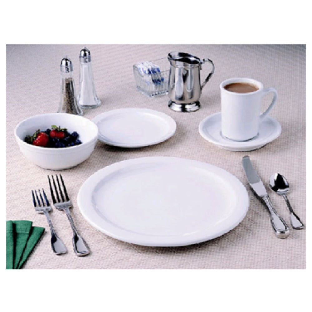 The Libbey 840-360-009 oatmeal bowl, previously recognized under the World Tableware brand, is a premium choice for both commercial and residential settings. With a capacity of 15 ounces, this bowl measures 5-5/8 inches in diameter and stands 2-1/4 inches high, offering the perfect size for serving breakfast favorites such as oatmeal, cereals, and soups. The bowl's round shape and rolled edge design not only enhance its aesthetic appeal but also ensure durability and user-friendly handling. Crafted from high-quality porcelain, this bright white bowl belongs to the Porcelana™ collection, renowned for its elegant and sophisticated look. Packaged as a set of 36 per case, it is ideal for restaurants, cafes, and catering services looking to maintain a consistent and stylish presentation in their tableware. The Libbey 840-360-009 oatmeal bowl combines functionality with a clean, classic design, making it a versatile addition to any dining service that values both form and function. Whether used in bustling food service environments or at a cozy breakfast table, this bowl stands as a testament to quality and timeless design.