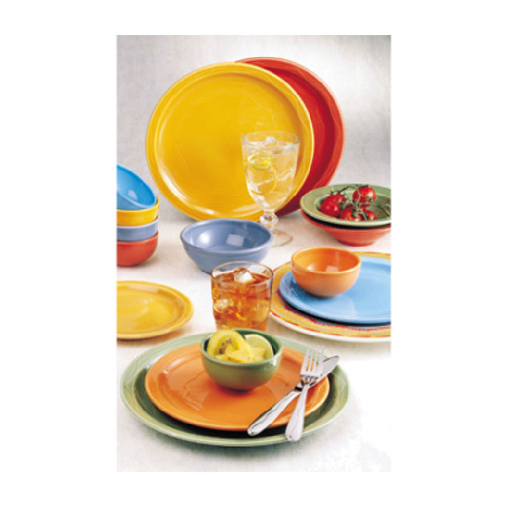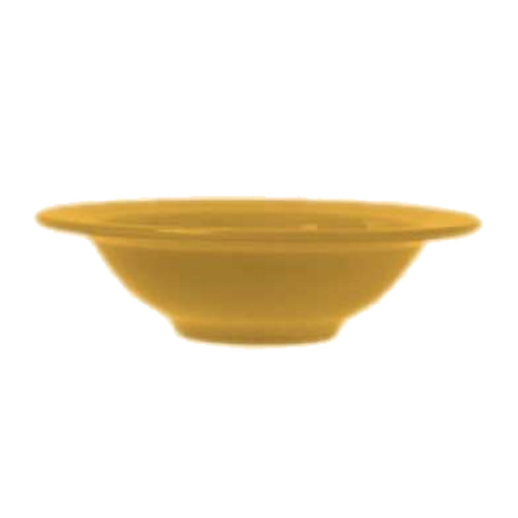 The Libbey 903033019, previously known as Syracuse China, Grapefruit Bowl is a meticulously crafted piece, designed to enhance the dining experience with its aesthetic and functional features. This bowl has a capacity of 12 oz. and dimensions of 7-1/2" in diameter and 2-1/8" in height, making it ideal for serving grapefruit or similar-sized dishes. The round shape is complemented by a fully vitrified body, ensuring durability and resistance to water absorption, which is crucial for maintaining hygiene standards in both home and commercial settings. The glazed foot adds a polished finish and prevents scratching on tables and countertops. The bowl features the Cantina® carved pattern and shape, which introduces a touch of elegance with its intricate design. Constructed from high-quality porcelain, it is available in a vibrant saffron color, adding a pop of color to any table setting. Each case contains 12 bowls, allowing for bulk purchases that are beneficial for restaurants, hotels, and catering services looking to maintain a uniform and stylish tableware collection. With these detailed specifications, the Libbey 903033019 Grapefruit Bowl stands out as both a functional and decorative addition to various dining environments.
