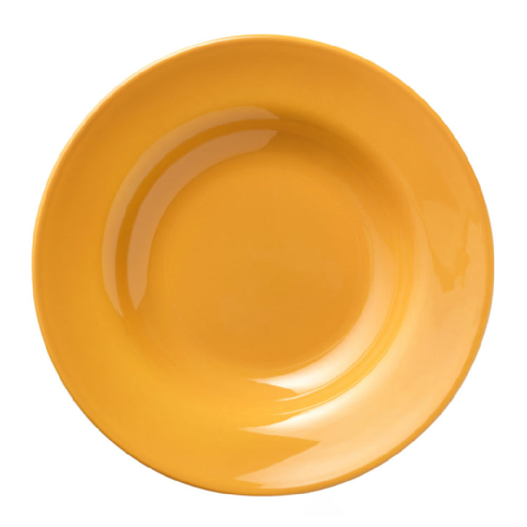 The Libbey 903044377 Pasta Bowl, formerly known as Syracuse China, is a versatile and elegantly crafted kitchen essential, perfect for both professional and home dining environments. This pasta bowl has a generous capacity of 21 ounces, making it ideal for serving ample portions of pasta, salads, or any culinary creation. With its 12-inch diameter and 2-inch height, the bowl provides a spacious serving area without compromising its sleek design. The round shape is complemented by a rolled edge, which not only adds to the aesthetic appeal but also ensures durability. This bowl is fully vitrified, offering enhanced resistance to moisture and physical impact, ensuring longevity in high-usage settings. The glazed foot of the bowl prevents scratching and ensures stability when stacked, making it a practical choice for restaurants and catering services. Featuring the distinctive Cantina® uncarved pattern and shape, this porcelain bowl comes in a vibrant saffron color, adding a touch of sophistication and warmth to any table setting. Available in cases of 12, the Libbey 903044377 Pasta Bowl is an excellent choice for establishments seeking a blend of functionality and style in their serveware.