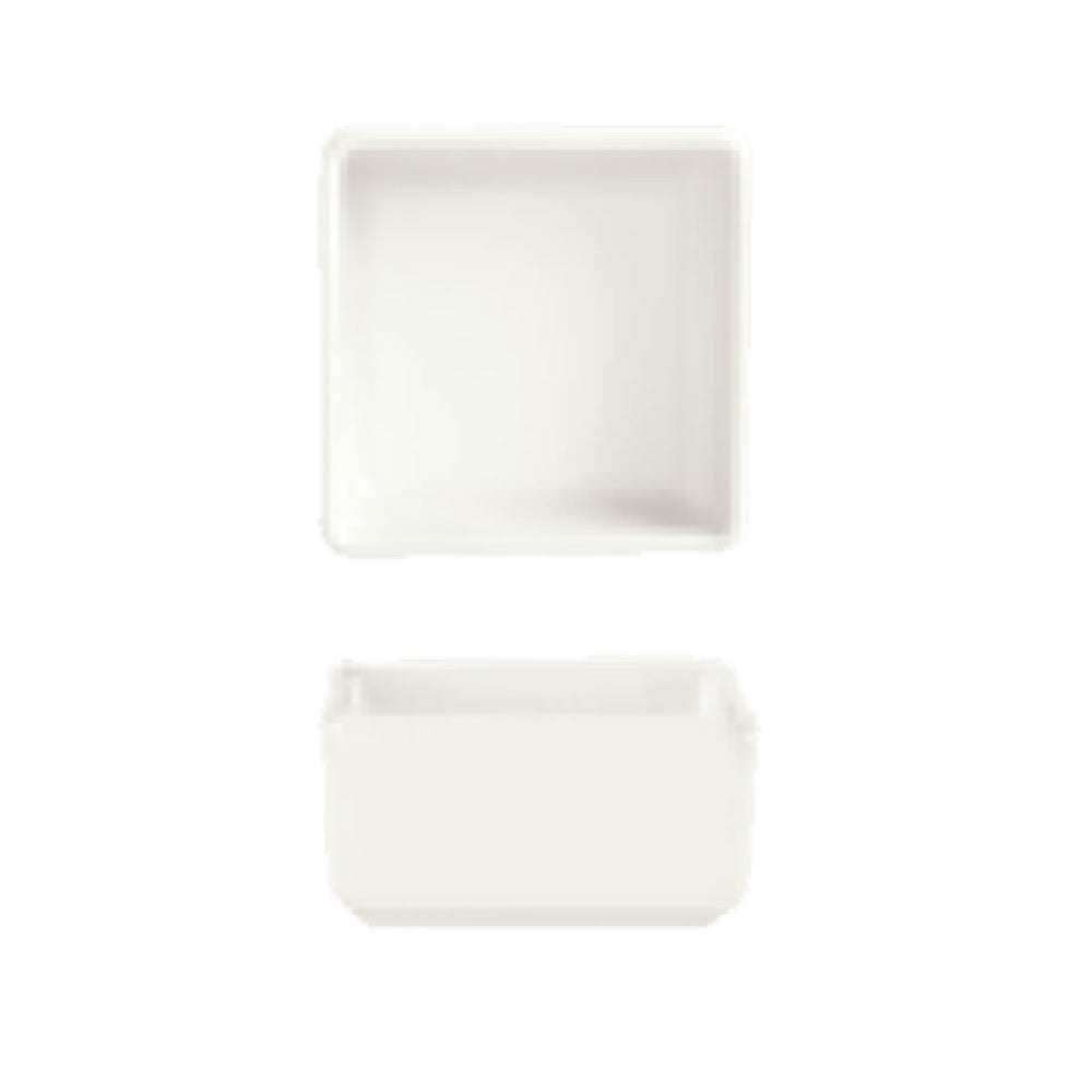 The Libbey 905356010 (formerly Syracuse China) Ramekin 2-1/4 oz. 2-1/2" x 1-1/4"H is a versatile piece designed for both efficiency and elegance. This square ramekin is crafted from fully vitrified porcelain, ensuring durability and resistance to chipping or cracking, making it a reliable choice for professional chefs and home cooks alike. It features the sophisticated Slenda® pattern and shape, adding a touch of modern style to any dining experience. The White Royal Rideau™ body color enhances its aesthetic appeal, seamlessly blending with various table settings. Its stackable design maximizes storage efficiency in busy kitchens, making it ideal for establishments with limited space. Each case contains 36 ramekins, providing ample supply for high-volume environments such as restaurants, hotels, and catering services. The Libbey 905356010 ramekin, with its precise dimensions of 2-1/2" x 1-1/4"H, offers a perfect serving solution for appetizers, desserts, or side dishes, catering to diverse culinary needs. This ramekin embodies a balance of quality, functionality, and style, making it a valuable addition to any food service operation.