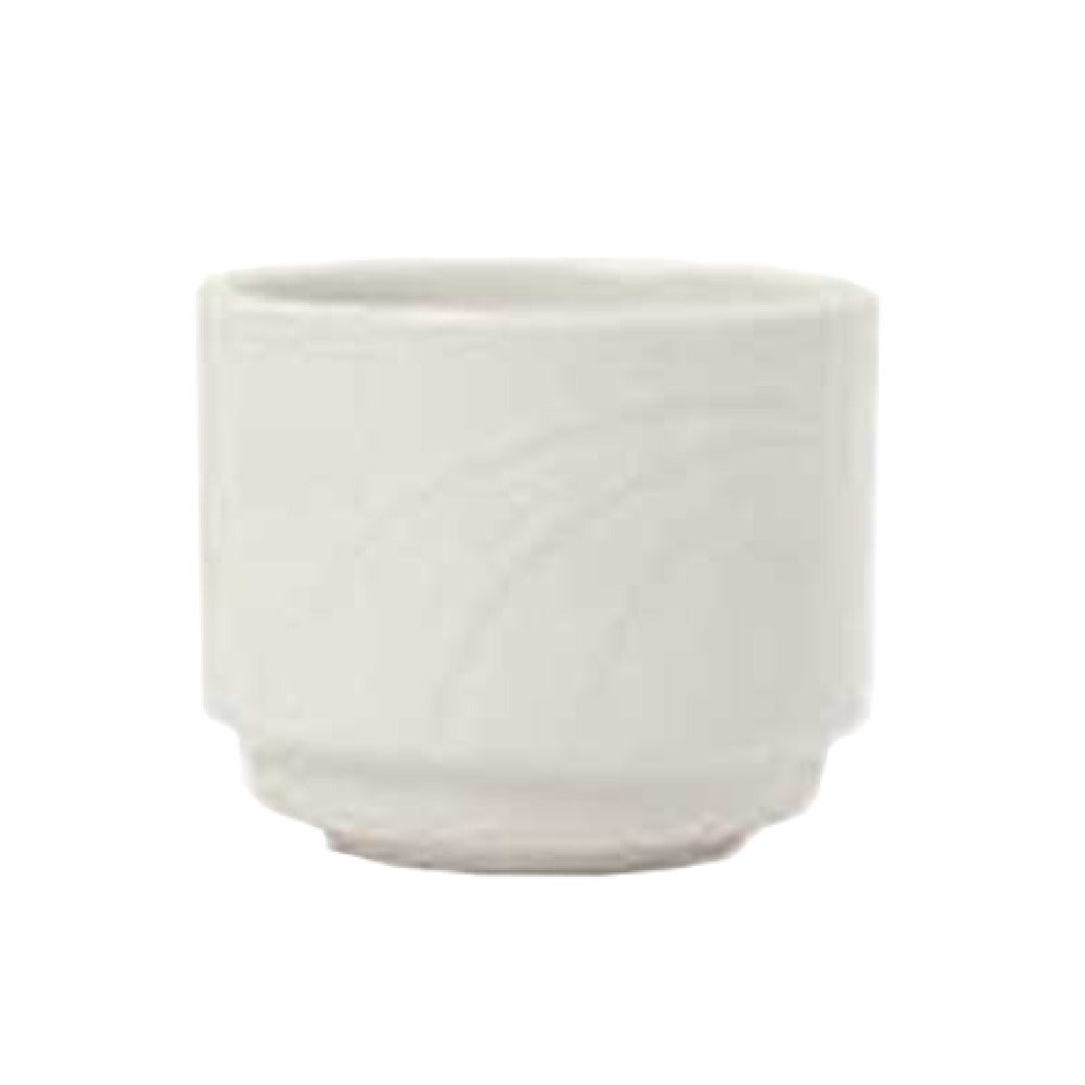 The Libbey 905437967, previously recognized as Syracuse China, Bouillon is a meticulously designed piece of dinnerware that caters to both aesthetic and functional needs in the culinary industry. With a capacity of 8-1/2 oz., this bouillon cup measures 3-1/4 inches in diameter and stands 2-3/4 inches tall, featuring a 2-inch diameter foot, which makes it stackable for efficient storage. Crafted from fully vitrified porcelain, it assures durability and resistance to thermal shock, embodying the elegant Élan pattern and shape. Its White Royal Rideau™ body color provides a classic and clean appearance, suitable for a variety of dining environments, from casual settings to upscale venues. This product is designed to fit saucer 90543788, offering versatility and coherence in table presentations. Available in cases of 36, it is a practical choice for restaurants, hotels, and catering services seeking to enhance their tableware collections with reliable and stylish pieces. The Libbey 905437967 Bouillon is a testament to quality and functionality, bridging traditional elegance with modern needs in food service.