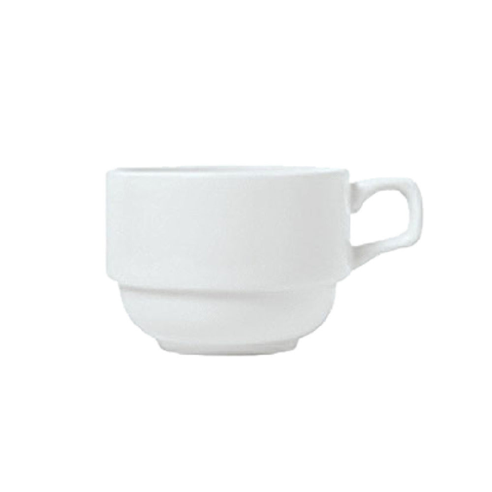 The Libbey 911194022 Espresso Cup, previously known as Syracuse China, is a meticulously crafted porcelain cup with a 4 oz. capacity, embodying elegance and functionality. Measuring 3-5/8 inches in diameter and 1-7/8 inches in height, it boasts a 1-5/8 inch diameter polished foot, ensuring stability and a refined appearance. The cup's stackable design is ideal for efficient space utilization, catering to the demands of bustling cafes and restaurants. Fully vitrified, this espresso cup is resistant to water absorption, ensuring longevity and maintaining hygiene standards. It features the sophisticated Reflections™ pattern and shape, complemented by the Aluma White™ body color, offering a timeless aesthetic that fits seamlessly into various dining settings. This cup pairs perfectly with the 911194 023 saucer, enhancing its visual appeal and practicality. Packed with 36 units per case, the Libbey 911194022 provides an economical solution for businesses needing quality dinnerware in bulk. Its durable construction and elegant design make it suitable for diverse market segments, from high-end hotels to casual dining environments, delivering an exceptional coffee-drinking experience in every setting.