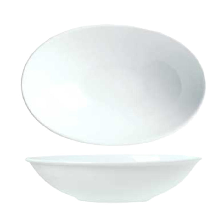 The Libbey 911194603, formerly known as Syracuse China, Infinity Bowl is a meticulously designed culinary vessel tailored for diverse dining environments. With a generous 23-ounce capacity, it is perfectly suited for serving soups, salads, pastas, and more, appealing to both casual and upscale dining settings. The bowl measures 8-1/4 inches in length, 5-3/8 inches in width, and 2-1/2 inches in height, offering ample space for creative food presentation. Its oval shape and polished foot provide both aesthetic appeal and stability on dining surfaces. Constructed from fully vitrified porcelain, this bowl ensures durability and resistance to chipping, making it an ideal choice for high-traffic commercial kitchens. The Chef's Selection™ pattern and shape, along with the Aluma White™ body color, add a touch of elegance, enhancing the visual presentation of dishes. This product is packed with a dozen bowls per case, catering to the needs of larger establishments. Whether for a bustling restaurant or a serene dining experience in a hotel, the Libbey 911194603 Infinity Bowl combines functionality with sophisticated design, making it a valuable addition to any professional dining ware collection.