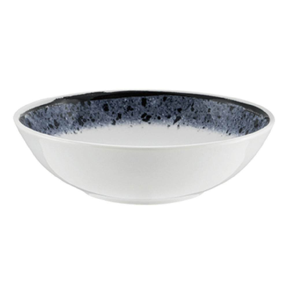 The Libbey 9133168-63076 (Formerly Syracuse China) Bowl, with a volume of 27 oz. and a diameter of 7 inches, is a versatile round porcelain bowl designed to meet diverse market needs. This product is part of the Schonwald collection and boasts a Shabby Chic blue stone design, making it an aesthetically pleasing choice for both casual and upscale dining environments. The bowl's scratch-resistant finish ensures longevity and durability, catering to the demands of high-traffic establishments such as restaurants, hotels, and catering services. Each case contains six bowls, providing ample supply for any dining setting. The porcelain construction offers a classic and timeless appeal, while its robust design supports everyday use. The Libbey 9133168-63076 bowl is particularly suited for businesses seeking to provide an elegant yet durable dining experience. Its size and capacity make it ideal for serving a variety of dishes, from soups and salads to pastas and entrees, enhancing the presentation of any culinary creation. This bowl represents a blend of functionality and design, making it a valuable addition to any tableware collection.