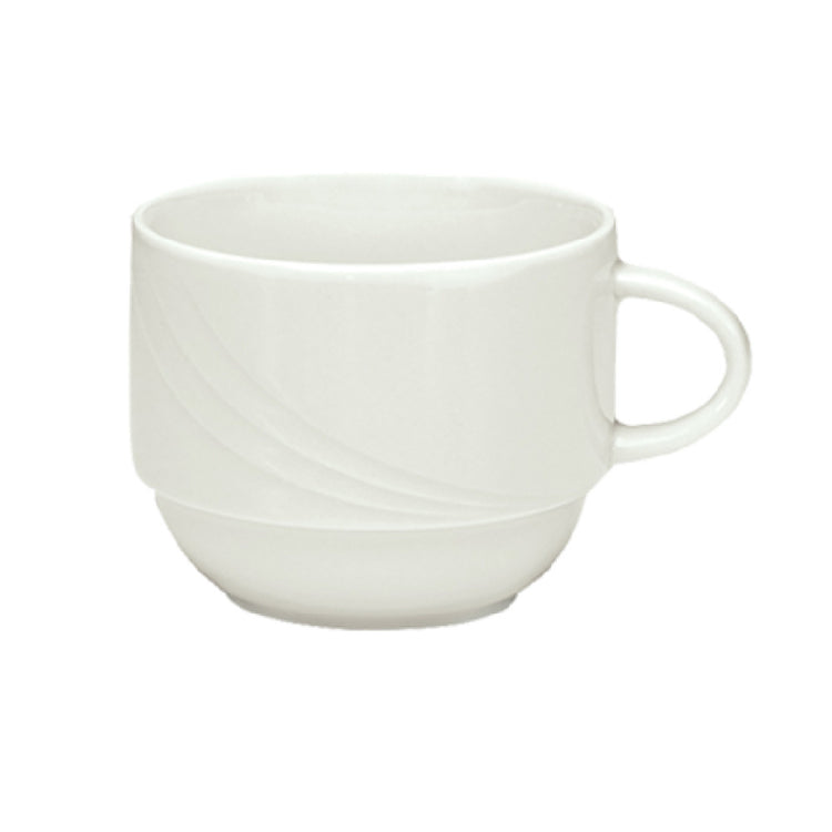 The Libbey 9185125 (Formerly Syracuse China) Cup is a meticulously designed piece, crafted to enhance both aesthetic appeal and functionality. With a capacity of 8-1/2 ounces, it is perfectly suited for serving various beverages, whether in a bustling café or a sophisticated restaurant. The cup features a 2-1/16 inches diameter foot, providing stability and elegance to its form. Its stackable design is a significant space-saving solution, ideal for businesses that require efficient storage options. Composed of high-quality porcelain, this cup is a part of the Donna pattern under the Schonwald brand, known for its durability and timeless style. The Continental White hue adds a touch of classic elegance, making it versatile for different dining environments. Each case contains 12 cups, ensuring that businesses have ample supply for their daily operations. This cup is particularly valuable for establishments prioritizing both functionality and a refined dining presentation, effectively catering to a wide range of market segments within the hospitality industry. Such design and utility make the Libbey 9185125 Cup a reliable choice for those seeking to maintain both practicality and elegance in their service ware.