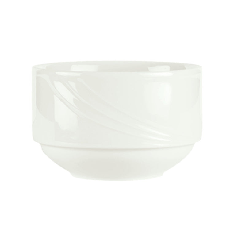 The Libbey 9186528 (Formerly Syracuse China) Bouillon 9-1/2 Oz. is a premium round porcelain vessel, part of the Donna pattern collection by Schonwald, designed in the elegant Continental White color. With dimensions of H 2-3/8" and F 2-1/8", this bouillon bowl is crafted to meet the sophisticated demands of the hospitality industry, providing both functionality and style. The 9-1/2 oz. capacity is perfect for serving soups, broths, and other culinary delights, making it an essential item for upscale dining establishments, hotels, and catering services. Each case contains 12 bowls, ensuring ample supply for high-volume service environments. The transition from Syracuse China to Libbey underscores a commitment to enduring quality and design. The sleek, durable porcelain construction of the Libbey 9186528 is not only visually appealing but also built to withstand the rigors of commercial use, ensuring longevity and reliability in various food service settings.