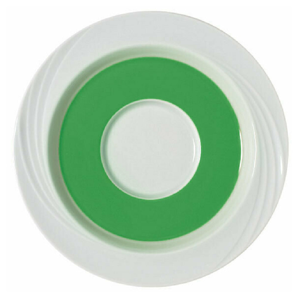 The Libbey 9187130-62942 Saucer, previously known as Syracuse China, is a meticulously crafted piece measuring 6-5/8 inches in diameter with a 2-3/8 inch well. Constructed from premium porcelain, this saucer is part of the Donna Senior pattern, offering a sophisticated touch to any table setting. The design features a subtle light green band that complements the Continental White™ tone, providing a versatile aesthetic suitable for various dining environments. Manufactured by Schonwald, a name synonymous with quality, this saucer is available in cases of 12, making it an ideal choice for restaurants, hotels, and catering services looking to enhance their serveware collection. The durable porcelain construction ensures longevity and resistance to chipping, accommodating the rigorous demands of the foodservice industry. Its round shape and precise dimensions are not only functional but also add an element of elegance, making it an excellent choice for both traditional and contemporary table settings. Packed by the case, the Libbey 9187130-62942 Saucer seamlessly combines aesthetics with practicality, catering to diverse market segments such as hospitality, fine dining, and event catering with its timeless design and robust build.