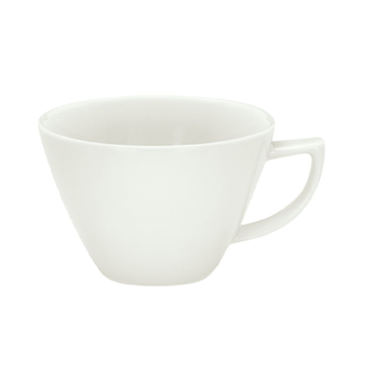 The Libbey 9195280, formerly known as Syracuse China Cup, is a meticulously crafted porcelain beverage container with a capacity of 10-1/4 oz. Measuring 4-1/4 inches in width and 2-3/4 inches in height, this cup is designed to meet the varied demands of the hospitality industry, particularly in settings that value both aesthetics and functionality. The cup features a 1-7/8 inch diameter foot, ensuring stability on any flat surface, while its non-stackable round shape enhances its elegant presentation. The fully vitrified porcelain construction guarantees durability and resistance to thermal shock, making it suitable for both hot and cold beverages. It is part of the Avanti Gusto pattern and shape, a design curated by Schonwald, which is well-regarded for its sophisticated appeal. The cup's Continental White body color complements a wide array of table settings, making it versatile for use in restaurants, hotels, and catering services. For added convenience, it fits seamlessly with saucer 9196918, providing a cohesive and polished look. Packaged in cases of six, the Libbey 9195280 cup is an exemplary choice for establishments seeking to elevate their dining experience through high-quality, dependable tableware.