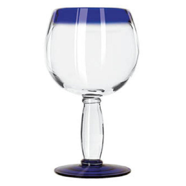 The Libbey 92309 Cocktail Glass 16 Oz. Round is a sophisticated choice for both casual gatherings and upscale events, designed to enhance the presentation of any cocktail. With a capacity of 16 ounces, this glass offers ample space for creative drink presentations. It features a distinctive cobalt blue rim and foot, adding an elegant touch to its design and making it stand out in any setting. The glass is hand-blown, showcasing artisan craftsmanship that ensures each piece is unique. Anneal treated, this cocktail glass is structured for enhanced durability, making it both dishwasher and microwave safe, thus combining practicality with style. The dimensions of the glass are specifically crafted for a balanced and ergonomic hold, with a height of 7-1/4 inches, a top diameter of 3-3/8 inches, a base diameter of 3-5/8 inches, and a maximum diameter of 4-1/4 inches. Packaged in cases of 12, the Libbey 92309 is ideal for hospitality venues, catering services, and home entertainment spaces. This glass is part of the Aruba collection, reflecting a commitment to quality and aesthetic appeal, and is a versatile addition to any glassware collection.