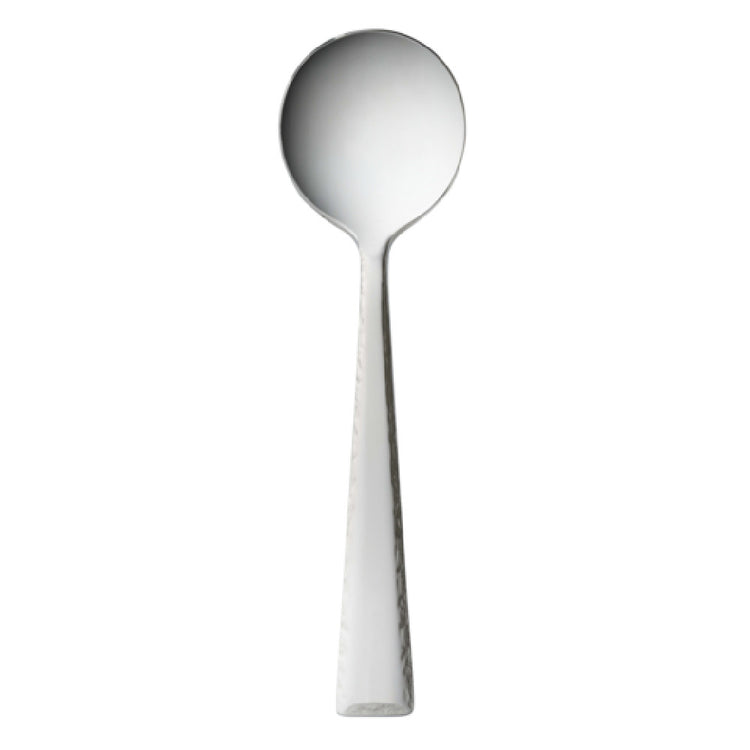 The Libbey 926 016 Bouillon Spoon, formerly known as World Tableware, is an exemplary utensil for dining establishments seeking both style and durability. Measuring 6-1/8 inches in length, this spoon is crafted from high-quality 18/8 stainless steel, ensuring longevity and resistance to corrosion. The hammered finish handle adds a touch of elegance while providing a secure grip, making it a perfect fit for upscale dining settings and restaurants wishing to enhance their table presentation. With a substantial thickness of 4.5 mm, this heavy-weight spoon promises resilience and a satisfying heft, appealing to establishments that prioritize both function and aesthetics. Part of the Condé International Collection, the Libbey 926 016 Bouillon Spoon is packaged 12 per case, suitable for efficient bulk purchasing by hotels, banquet halls, and catering services. Its classic design and robust construction make it an ideal choice for serving broths, soups, and soft desserts, while seamlessly matching various tableware collections. This spoon stands out as a versatile option for food service professionals looking to maintain high standards of elegance and practicality in their cutlery offerings.