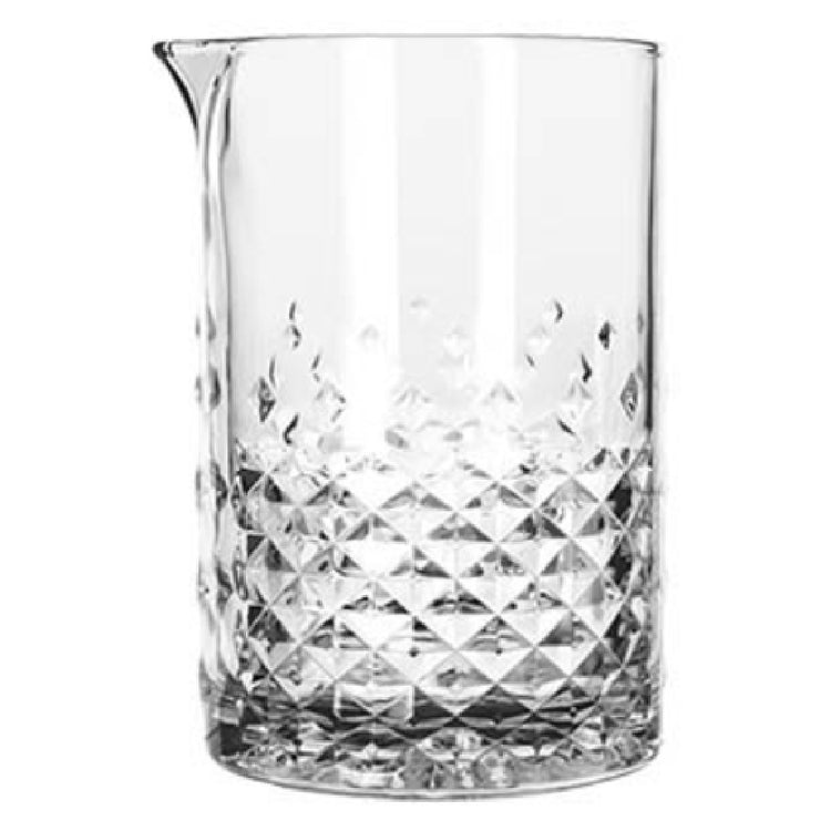 The Libbey 926781 Carats Stirring Glass 25-1/4 Oz. Pour Spout is an elegantly designed stirring glass that combines functionality with a retro-inspired aesthetic. With a substantial capacity of 25-1/4 ounces, it is a versatile addition to any barware collection, catering to both professional bartenders and cocktail enthusiasts. The stirring glass is part of the Spirits Collection and features a unique retro-inspired cut glass design that adds a touch of sophistication to any setting. Its dimensions are thoughtfully crafted, with a height of 5-7/8 inches, a top diameter of 3-3/4 inches, a base diameter of 3-3/4 inches, and a maximum diameter of 4-1/8 inches. The inclusion of a pour spout enhances ease of use, allowing for precise and spill-free pouring of mixed drinks. This stirring glass is packaged with six pieces per case, providing a practical option for establishments requiring multiple units. The Libbey 926781 Carats Stirring Glass is ideal for use in bars, restaurants, and at home, offering a blend of style and utility that is sure to elevate the cocktail experience across different market segments within the beverage industry.