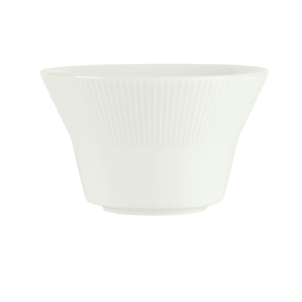 The Libbey 9405378-62987 Bouillon, formerly known as Syracuse China, is a meticulously designed porcelain vessel ideal for various dining settings. With a capacity of 11 oz., this bouillon bowl measures 4-1/2 inches in diameter and stands 2-3/4 inches tall, featuring a 2-inch diameter foot that provides stability and elegance. Its fully vitrified construction ensures enhanced durability and resistance to chipping, making it suitable for high-traffic environments like restaurants and catering services. The Connect Radial pattern and shape, combined with the Schonwald, Continental White body color, offer a sophisticated aesthetic that complements any table setting. This product comes in cases of six units, allowing for efficient stock management in both retail and hospitality sectors. The Libbey 9405378-62987's blend of durability and timeless design makes it a valuable asset for businesses seeking reliable and stylish tableware solutions. Its technical specifications and elegant appearance cater to diverse market segments, including upscale dining and casual eateries, ensuring it meets the needs of professionals in the food service industry.