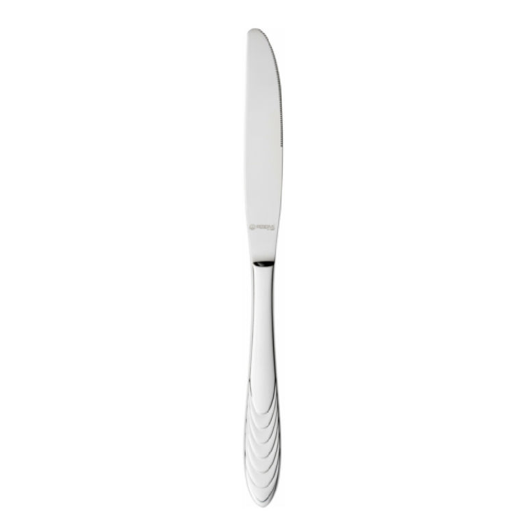 The Libbey 950 5501 Dinner Knife 8-1/4" Heavy Weight is a meticulously crafted utensil designed to enhance dining experiences across various market segments. With a length of 8-1/4 inches, this dinner knife is perfectly balanced to provide optimal handling and cutting performance. Constructed from 18/10 stainless steel, it boasts exceptional durability and resistance to corrosion, making it an ideal choice for both high-end restaurants and casual dining establishments. The high mirror finish adds a touch of elegance, ensuring that this knife not only performs well but also complements any table setting with its polished appearance. Part of the prestigious Reserve by Libbey collection, the Caparica design embodies sophistication and functionality, suitable for upscale hospitality venues as well as home dining. Each case contains 12 of these heavy-weight knives, offering excellent value for bulk purchases. This knife is specifically tailored for settings that demand both style and practicality, making it a versatile addition to the cutlery repertoire in various dining environments.