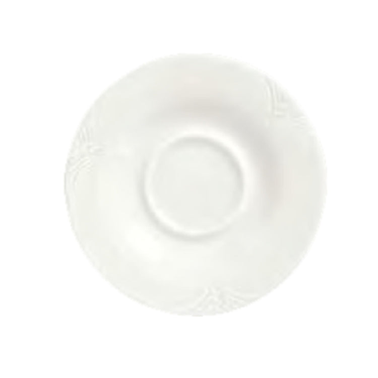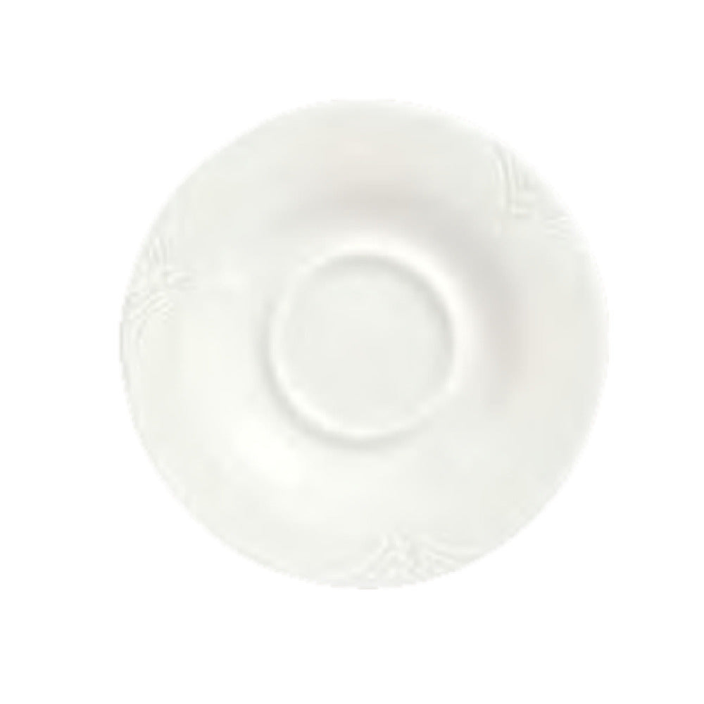 The Libbey 950041436, formerly known as the Syracuse China Saucer, is a meticulously crafted porcelain piece designed to meet the needs of diverse dining establishments. With a diameter of 5-5/8 inches and a 2-inch diameter well, this round saucer is part of the Reserve by Libbey collection, specifically the Café Royal line. Each case contains 36 units, making it a practical choice for cafes and restaurants requiring substantial quantities of high-quality dining ware. Fully vitrified, the saucer boasts enhanced durability and resistance to chipping, providing a reliable option for high-traffic environments. The porcelain construction not only ensures a sleek and elegant appearance but also offers superior heat retention, enhancing the dining experience by maintaining beverage temperatures for longer periods. Whether used in a bustling café or a fine dining setting, the Libbey 950041436 saucer combines timeless design with practical functionality, making it a versatile addition to any table setting. Its classic style and robust construction cater to the demands of the food service industry, providing both aesthetic appeal and practical utility to professionals seeking reliable and attractive serving solutions.