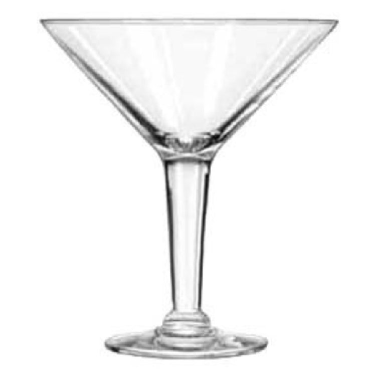 The Libbey 9570101 Super Martini Glass 44 Oz. With Stem is a meticulously crafted piece, perfect for those looking to elevate their beverage presentation. This hand-blown glass features a generous capacity of 44 ounces, making it an ideal choice for serving large cocktails or sharing drinks at upscale events. With its clear glass composition, it accentuates the visual appeal of its contents, adding an elegant touch to any occasion. The glass stands at a height of 10-1/8 inches, with a top diameter of 9-1/4 inches, providing a broad surface area that enhances the drinking experience. The base, measuring 5-1/4 inches, ensures stability, while the stem design offers an easy grip, adding to its sophisticated aesthetics. Packaged in a set of six per case, this glass is suitable for both commercial and high-end home use, catering to a diverse market segment from high-volume bars to intimate dining settings. Its elegant design and substantial volume make it a standout choice for event planners, hospitality venues, and cocktail enthusiasts who appreciate both form and function in their glassware selection. The Libbey 9570101 is a testament to quality and style, embodying a perfect blend of practicality and elegance.