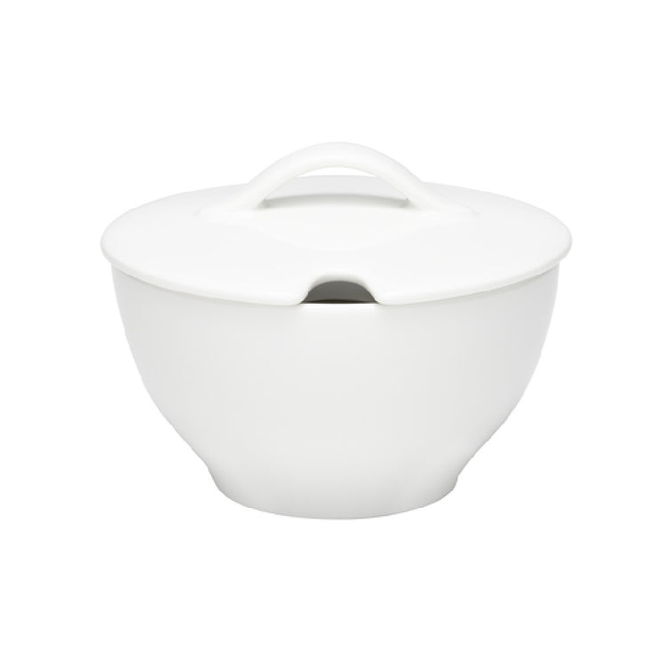 The Libbey 9824919 (Formerly Syracuse China) Sugar Bowl is a refined and functional piece designed for both elegance and practicality. Crafted from high-quality porcelain, this sugar bowl has a capacity of 6-3/8 oz., making it suitable for various dining settings, whether in upscale restaurants or cozy cafes. Its round shape with dimensions of 3-3/4" in diameter and 2-3/4" in height provides a compact but ample storage solution for sugar, suitable for personal or shared use. The inclusion of a lid adds an element of hygiene and freshness, ensuring the contents remain uncontaminated. Dishwasher safe, the Libbey 9824919 sugar bowl simplifies maintenance, making it an ideal choice for busy foodservice environments that require quick and efficient cleaning processes. Manufactured under the Schonwald Delight line, this sugar bowl represents a blend of tradition and modern design. Offered in cases of 12, it caters to larger establishments seeking uniformity and reliability in tableware. Its transformation from the Syracuse China brand to Libbey underscores a continuity in quality and commitment to excellence, positioning this sugar bowl as a valuable asset within the hospitality industry.