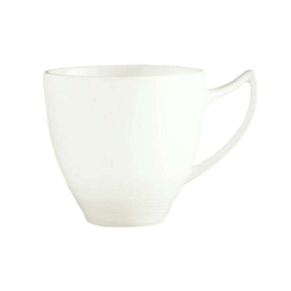 Libbey 987659330 (Formerly Syracuse China) Cup 8-1/2 Oz. 4-1/4" Dia. X 3-1/8"H is a versatile and elegantly designed cup tailored for various industry needs, from hospitality to dining establishments. This cup features a capacity of 8-1/2 ounces, making it suitable for serving a range of beverages. The dimensions of 4-1/4 inches in diameter and 3-1/8 inches in height, along with a 1-5/8-inch diameter foot, contribute to its stable and ergonomic design. Crafted from fully vitrified porcelain, the cup ensures durability and a sophisticated appearance, suitable for high-end restaurant settings. The incorporation of a handle enhances user convenience and comfort during use. Belonging to the Reserve By Libbey line, this cup is presented in a Silk finish, which adds a touch of elegance to its aesthetic. Designed to complement saucer 987659332, this cup fits seamlessly into coordinated tabletop presentations. With each case containing 36 units, it allows for efficient bulk purchasing for busy service environments. This product effectively balances aesthetics, functionality, and durability, making it a valuable addition to any dining service repertoire.