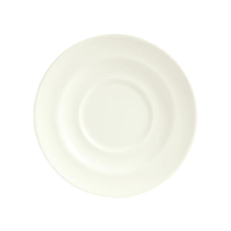 The Libbey 987659393 saucer, previously known under the Syracuse China brand, is an intricately designed piece of tableware with a diameter of 6-1/2 inches, catering seamlessly to various industry segments. This round saucer features a 2-3/4-inch diameter well, making it an ideal choice for serving tea or coffee cups with precision and style. Its fully vitrified porcelain construction ensures a robust finish that is both aesthetically pleasing and resilient, meeting the demands of high-traffic food service environments. The saucer is part of the Reserve By Libbey collection and comes in a sophisticated Silk color, adding an element of elegance to any dining setting. Packaged with 36 pieces per case, this saucer is well-suited for restaurants, hotels, and event venues that require durable and stylish serviceware solutions. The Libbey 987659393 saucer's combination of quality, durability, and design adaptability makes it a valuable addition to any professional table service collection, ensuring a refined dining experience for patrons.