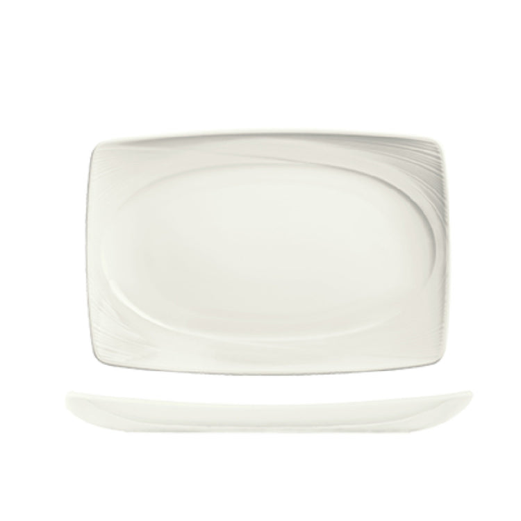 The Libbey 987659395, formerly known as Syracuse China, Platter is a versatile dining essential designed to meet the needs of various market segments, from hospitality to culinary professionals. This platter measures 13 inches by 9 inches, providing ample space for presenting a variety of dishes, from appetizers to entrees. Its rectangular shape adds a modern touch to table settings, while the embossed rim enhances its aesthetic appeal. Constructed from fully vitrified porcelain, this platter is engineered for durability and resistance to chipping, making it suitable for high-traffic environments. The "Reserve By Libbey" collection, including this platter, is renowned for its quality and elegance, offering a sophisticated backdrop for culinary creations. The Silk finish imparts a subtle sheen, elevating the visual presentation of dishes. Sold in cases of 12, this platter is ideal for establishments that prioritize both style and practicality. Packed by Cs, it ensures safe transportation and handling. Whether used in upscale restaurants or catering events, the Libbey 987659395 platter seamlessly combines functionality with a refined design, making it a valuable addition to any professional dining setting.