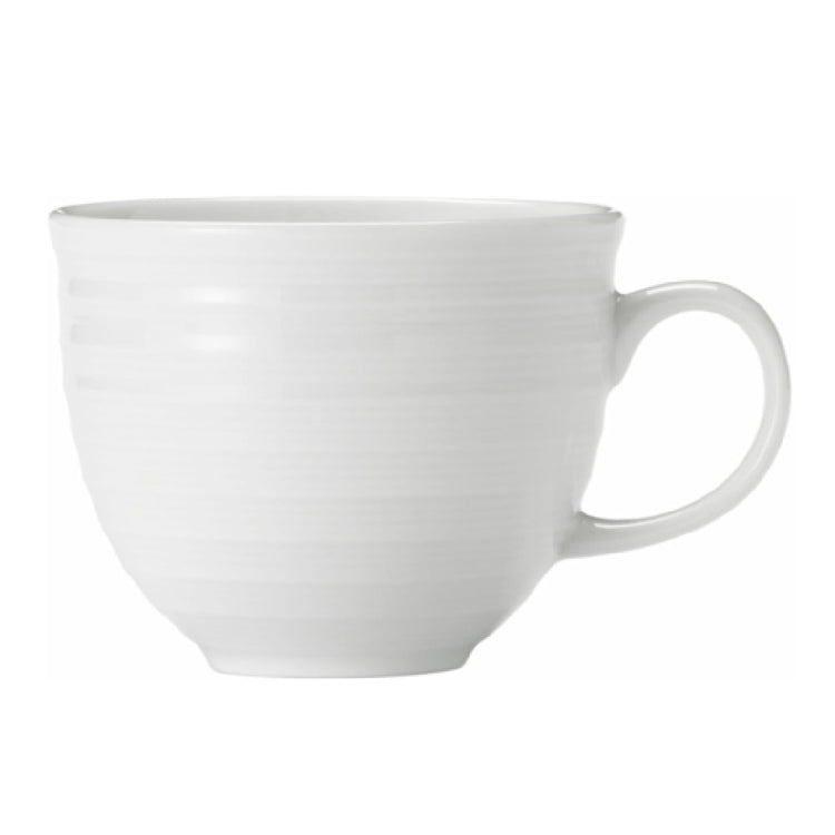 The Libbey 999001889, known previously as the Syracuse China Cup, 9-1/2 oz. with handle, is an expertly crafted piece of porcelain dinnerware designed to meet the needs of diverse markets within the hospitality and food service industry. This cup boasts an embossed design and a highly polished foot, which enhances its aesthetic appeal, while its Microban® fully vitrified glaze ensures durability and resistance to scratches and stains. The Galileo™ pattern and shape, coupled with the Constellation™ and Lunar White™ body color, make it a visually striking choice for upscale dining environments. This product is compatible with saucer 999013 500, providing flexibility in presentation. Each case contains 36 cups, making it ideal for bulk purchases by restaurants, hotels, and catering services. The Libbey 999001889 combines elegance and practicality, offering a reliable solution for serving beverages in a variety of professional settings. Its distinctive features and high-quality construction position it as a valuable asset for establishments seeking to enhance their service with stylish and durable dinnerware options.