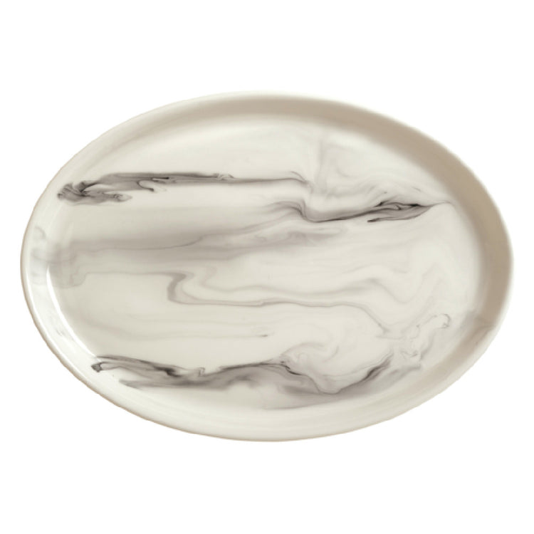 The Libbey 999533008, formerly known as Syracuse China, is a 13-inch by 9-1/2-inch oval platter, showcasing a fully vitrified porcelain construction. This platter, part of the Reserve By Libbey line, comes in a Smoke color and is available in cases of 12. Its fully vitrified design ensures durability and resistance to moisture absorption, making it highly suitable for various food service environments, including restaurants, hotels, and catering events. The platter's oval shape offers an elegant presentation for a variety of dishes, from entrees to shared appetizers, providing versatility across different dining settings. Its robust porcelain material lends a sophisticated yet practical touch, ideal for establishments seeking to enhance their tabletop aesthetics while maintaining functionality and resilience. This product serves a wide range of industry segments by combining style with the practical needs of high-volume commercial use, fitting seamlessly into both casual and formal dining atmospheres. The Libbey 999533008 platter is a reliable choice for those looking to balance design and utility in their serviceware collection.