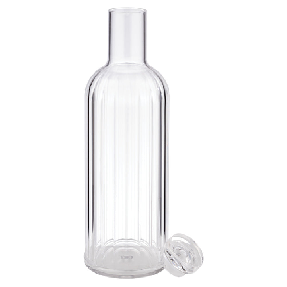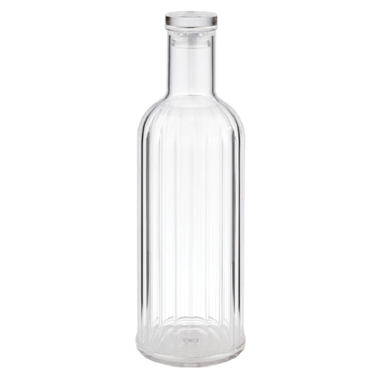 The Libbey APS 10748 Bottle is a versatile and robust container designed for various industry applications. With a substantial capacity of 33-7/8 oz., it is suitable for both personal and professional settings. Measuring 3-5/8 inches in diameter and standing 11-1/4 inches tall, this bottle offers ample storage space while maintaining a manageable size for easy handling. Its ribbed texture enhances grip and aesthetic appeal, making it a standout piece in any collection. Included with the bottle is a top featuring a silicone ring and cover, ensuring a secure seal to prevent spills and maintain the contents' integrity. Constructed from shatter-proof MS plastic, this clear bottle is designed for durability and longevity, although it requires hand washing to preserve its quality. Manufactured under the reputable APS brand from Germany, this product is available in cases of 12, making it an excellent option for bulk purchases. Ideal for use in hospitality, catering, and home environments, the Libbey APS 10748 Bottle combines practicality with style, meeting the needs of diverse market segments with its reliable design and functional features.