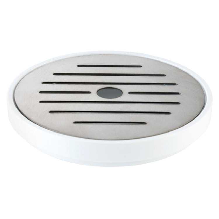 The Libbey APS 10851 Drip Tray stands out as a versatile and practical solution for beverage dispensing needs across various market segments. With dimensions of 3-3/4 inches in diameter and 5/8 inches in height, this round drip tray is designed to efficiently capture drips and spills from juice and beverage dispensers, ensuring a clean and tidy serving area. Its stackable feature is ideal for businesses looking to maximize storage efficiency. The drip tray includes a durable stainless steel insert, which not only enhances its longevity but also adds a touch of elegance to its design. Non-slip feet provide stability during use, preventing accidental slips and spills. Constructed from MF melamine, this product is both robust and lightweight, making it easy to handle and maintain. Additionally, the tray is dishwasher safe, simplifying the cleaning process and making it a convenient choice for busy commercial environments. Available in a sleek white finish, the Libbey APS 10851 Drip Tray is a practical and stylish addition to any juice or beverage service setup, catering to the needs of cafes, restaurants, and catering services alike.