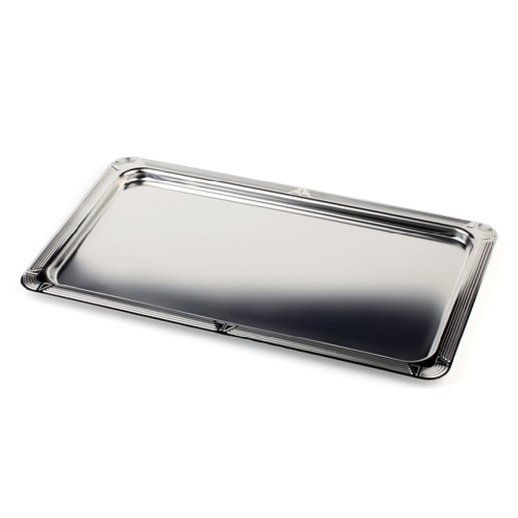 The Libbey APS 11000 Serving Tray GN 1/1 is a meticulously crafted rectangular tray measuring 20-7/8 inches in length, 12-7/8 inches in width, and 3/4 inches in height. This serving tray stands out with its stackable design, allowing for efficient storage in professional settings. Its decorated edge adds a touch of elegance, making it suitable for upscale dining environments. Constructed from high-quality 18/10 stainless steel, it boasts exceptional durability and resistance to corrosion. The tray's mirror polish finish not only enhances its aesthetic appeal but also makes it easy to clean. As a dishwasher-safe product, it caters to the needs of busy kitchens, ensuring quick and sanitary maintenance. Proudly made in Germany, this tray is part of the Profi Line by APS® Germany, indicating its professional-grade quality and design. The Libbey APS 11000 serving tray is packaged with one piece per case, facilitating ease of ordering for catering services, hotels, and restaurants seeking reliable and stylish serving solutions. This versatile tray is an excellent choice for those in the hospitality industry looking to combine functionality with high-end presentation.