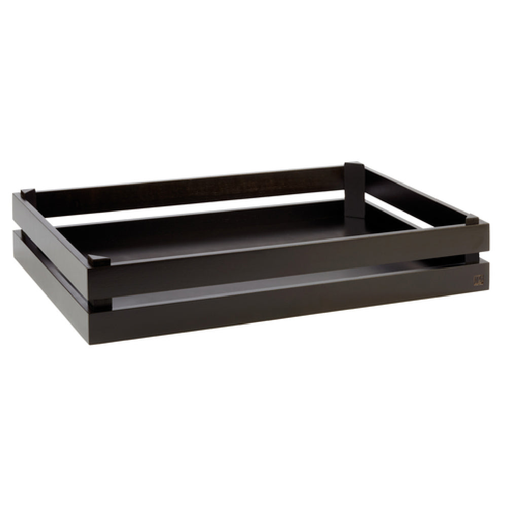 The Libbey APS 11626 Superbox Foundation is a versatile rectangular storage solution measuring 21-7/8"L x 13-7/8"W x 4-1/4"H, designed to meet diverse needs in the culinary and hospitality sectors. Constructed from acacia wood with a sleek black finish, this product combines both durability and aesthetic appeal. It is stackable, offering efficient storage space utilization, and can accommodate a GN 1/1 pan, enhancing its functionality as a kitchen essential. The Superbox Foundation's design allows it to be used in multiple ways - as a basket, a riser, or a base for a beverage ice bin - providing flexibility for various operational requirements. Its non-slip feature ensures stability, making it ideal for dynamic environments where safety is paramount. Manufactured by APS® Germany, a renowned name in the industry, this product is packed as one per case, ensuring quality control and consistency. The Libbey APS 11626 Superbox Foundation is an exceptional choice for establishments looking to optimize space while maintaining a high standard of presentation and utility, serving as a reliable component in both back-of-house and front-of-house settings.