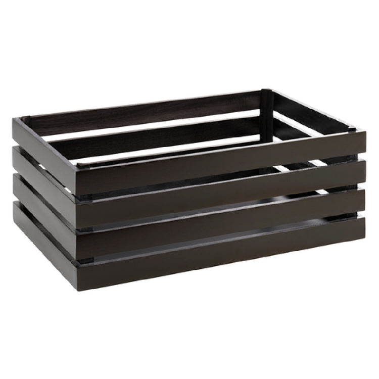The Libbey APS 11723 Superbox Tall GN 1/1 is a versatile and robust storage solution designed with precision to meet the diverse needs of the food service industry. With dimensions of 13 3/4 inches in length, 21 7/8 inches in width, and 7 7/8 inches in height, this rectangular unit is crafted from elegant acacia wood, offering both functionality and style. It is specifically engineered to accommodate a GN 1/1 pan, providing a seamless fit for various culinary applications. The Superbox is stackable, allowing for efficient use of space in busy kitchen environments. Its non-slip design ensures stability and safety when used as a basket, riser, or base for a beverage ice bin, making it suitable for multiple purposes within restaurants, catering services, and hospitality settings. The black finish adds a sleek, modern touch, complementing any professional decor. Manufactured in Germany by APS®, this product is available in a single unit per case, ensuring quality and attention to detail. The Libbey APS 11723 Superbox Tall GN 1/1 embodies durability and adaptability, making it an ideal choice for industry professionals seeking reliable and flexible storage solutions.